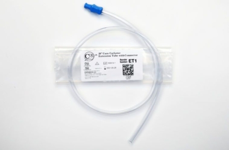The flexible Cure Medical Extension Tube conveniently connects to the funnel of all Cure Medical catheters, facilitating easy draining.